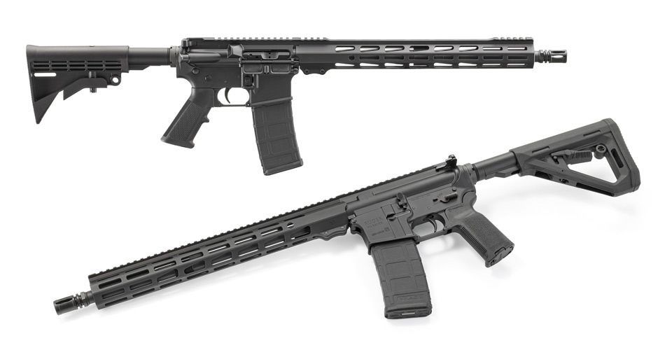 Each flat-top upper receiver includes Picatinny rail slots, a forward assist, dust cover, brass deflector and mil-spec charging handle. The 16.1" barrels are black-nitride coated for corrosion resistance and longevity, and incorporates 1:8" twist button rifling, a 5.56 NATO chamber and 1/2"-28 muzzle threads capped with a classic A2 flash hider.