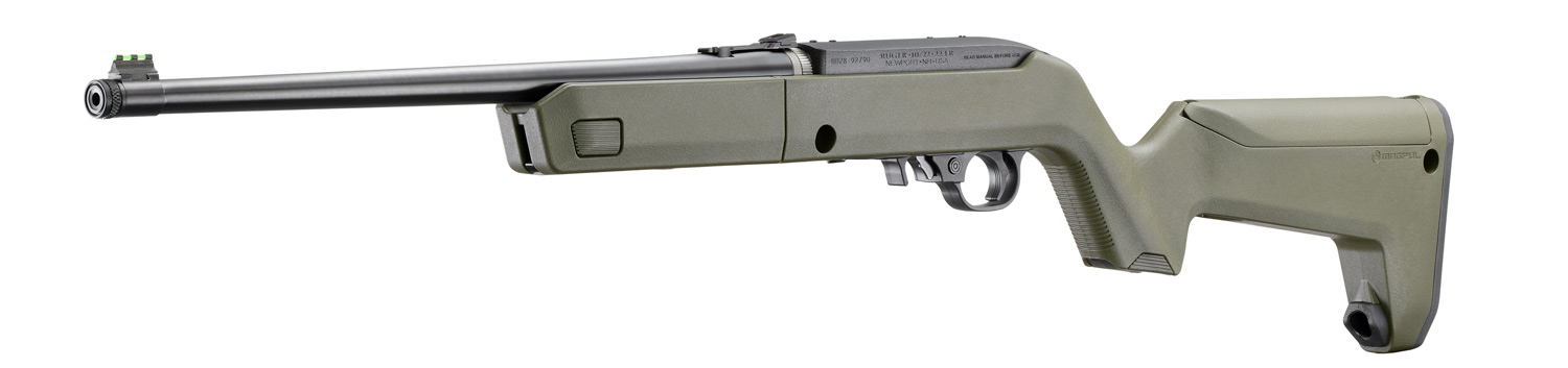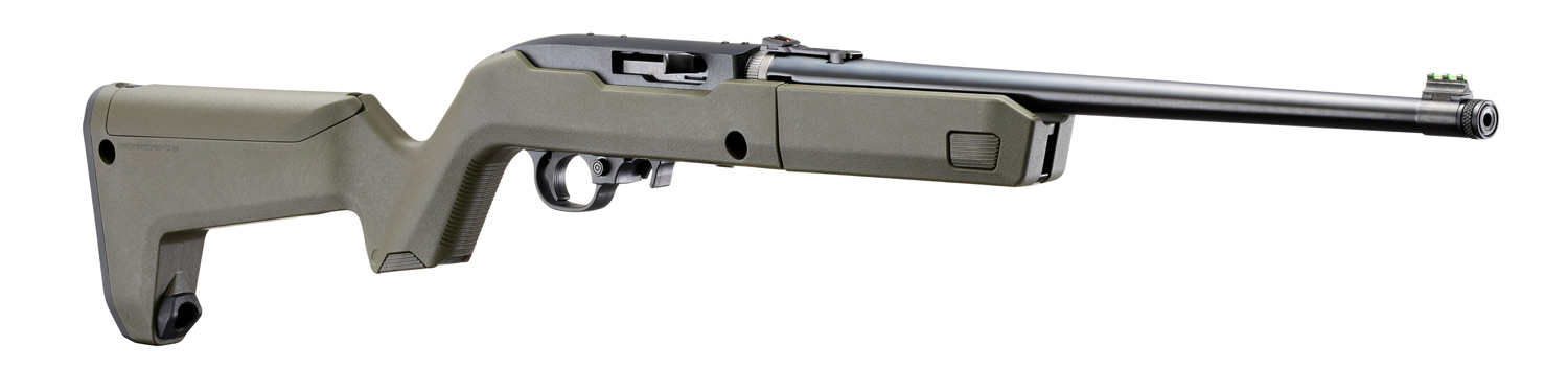 Features a Magpul® X-22 Backpacker stock with an ergonomic handguard, optional QD sling mounting capability, integrated storage compartment in the grip, a hinged storage compartment in the stock capable of storing up to three spare 10-round magazines, an MOE SL® non-slip rubber buttpad, and a unique locking interface to attach the barrel assembly to the receiver when being transported.
