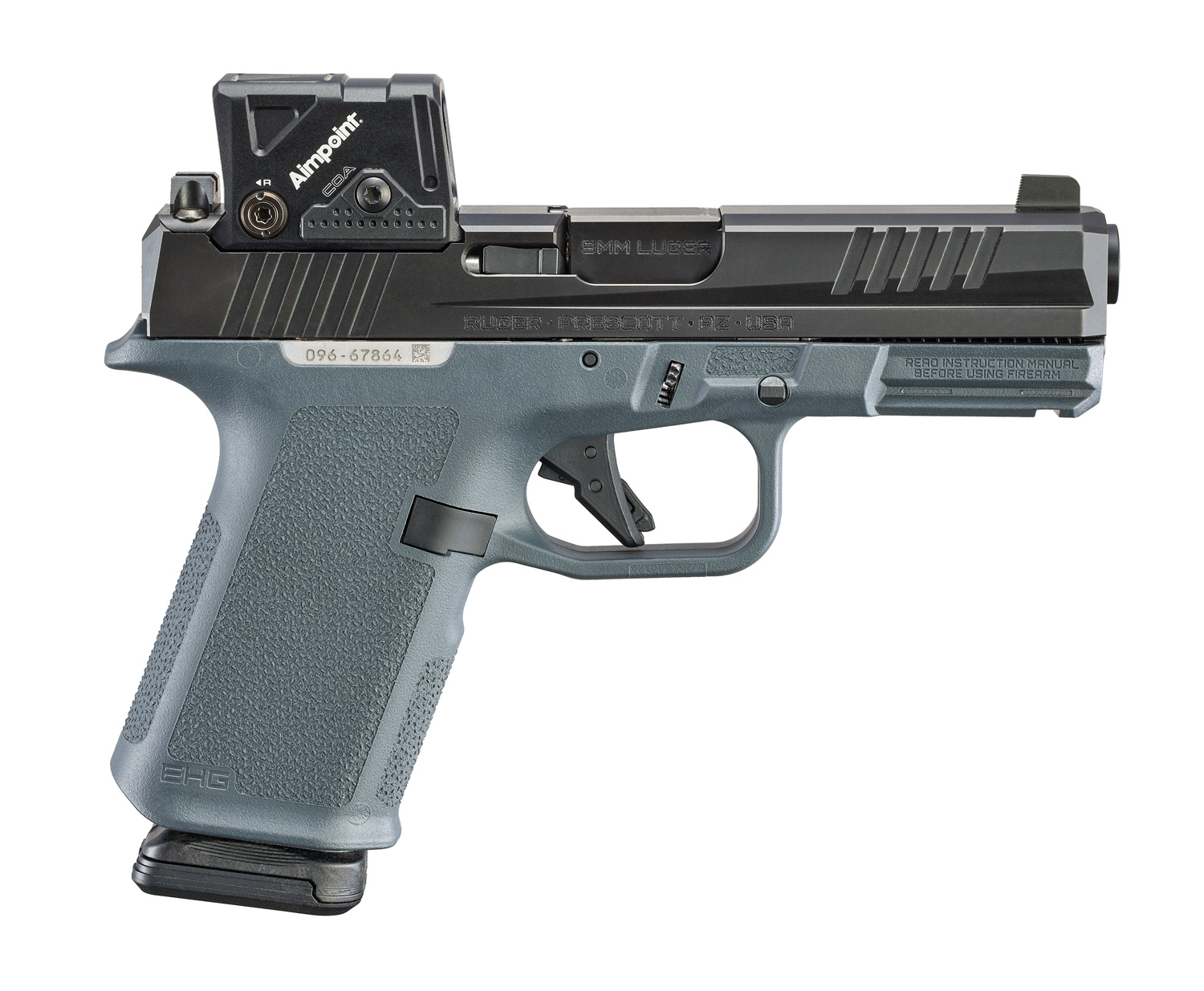 Other EHG features include: a low-profile, flared magazine well for quick and easy magazine insertion; a trigger guard undercut and beaver tail that promote a high grip for better control; a magazine release scallop for easy access; and a universal-pattern accessory rail for use with a variety of lights and lasers.