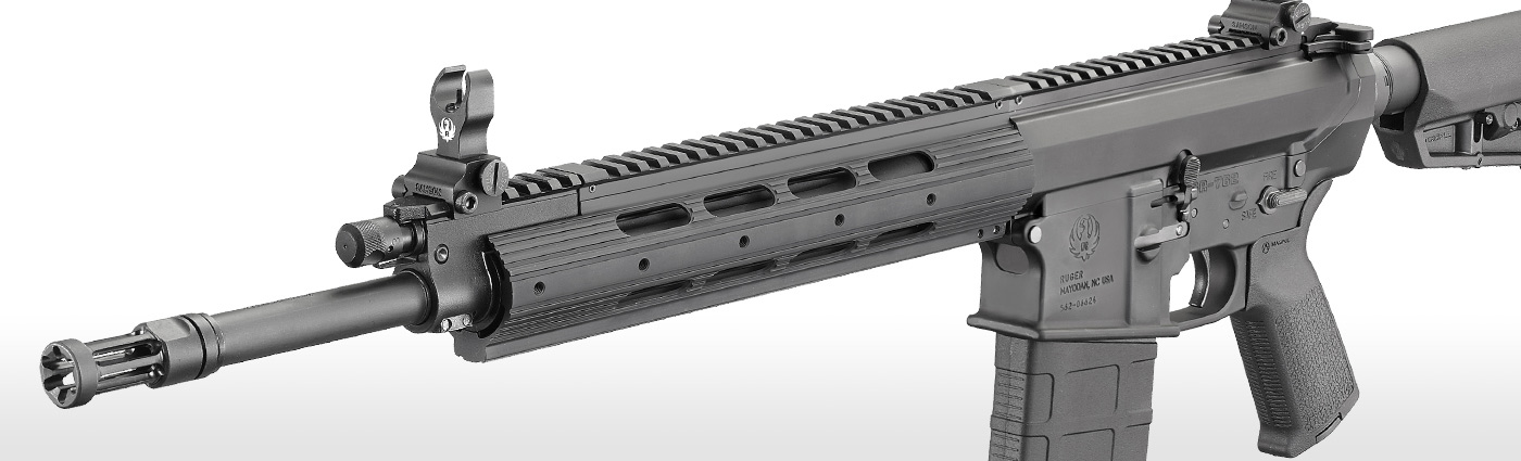 Fluted barrel, for reduced weight and improved barrel cooling, features a Ruger® flash suppressor mounted with a 5/8"-24 thread.