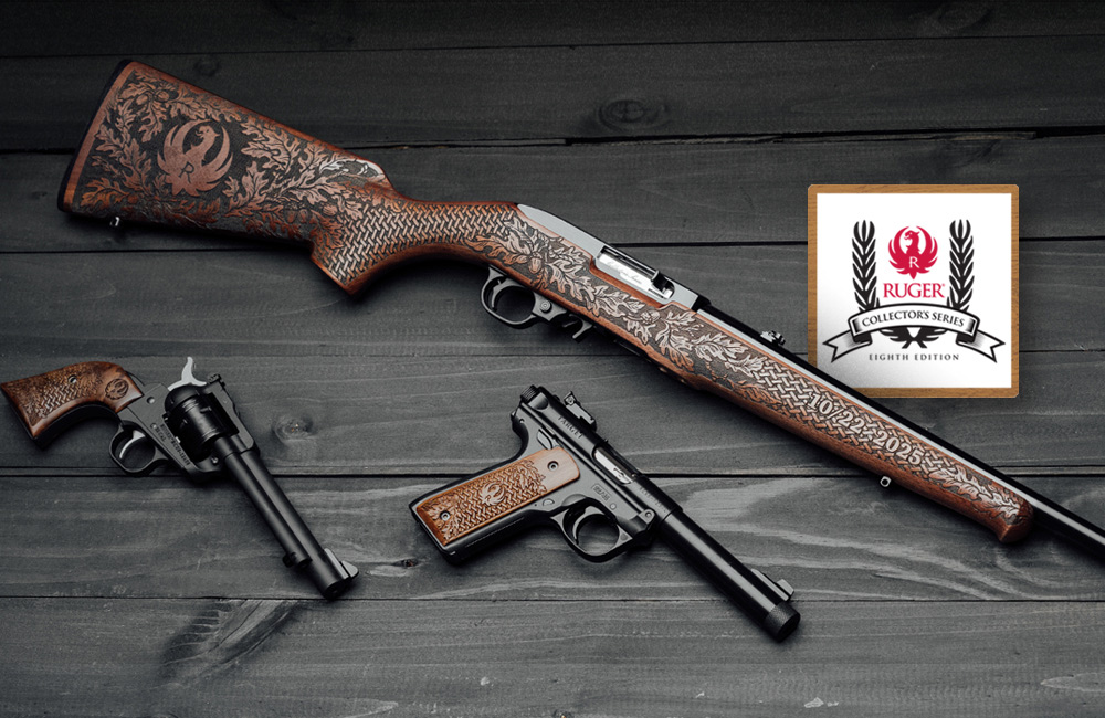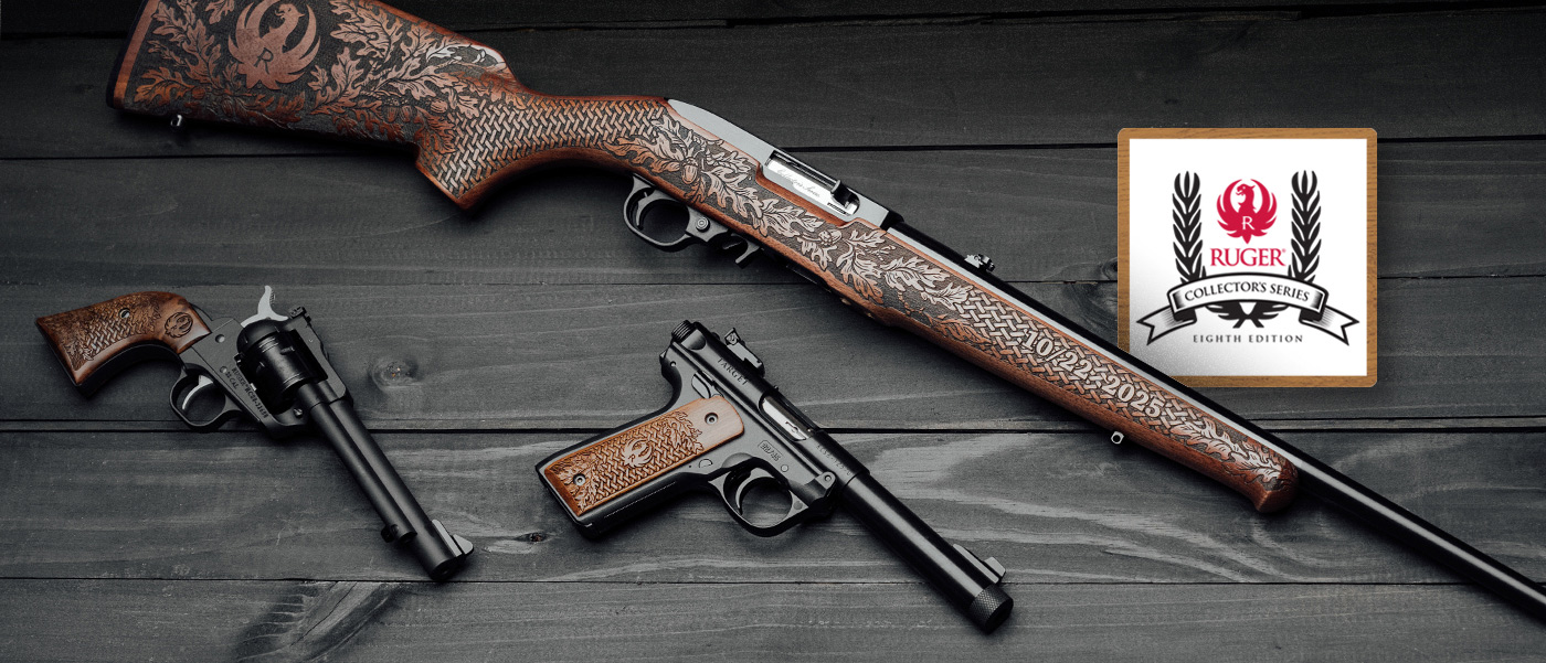 Ruger Firearms introduced the 10/22® Collector's Series in September 2014, with the 50th Anniversary of the 10/22. Over the years, the Ruger Collector's Series has produced seven special edition 10/22 rifles, giving collectors and enthusiasts the opportunity to own a unique, limited run rifle. This year, we're excited to announce another edition of the Collector's Series, but it's not the same series you have come to expect. The eighth edition of the Ruger Collector's Series features three models – a 10/22 Sporter, a Mark IV™ 22/45™ pistol and a Super Wrangler® revolver.