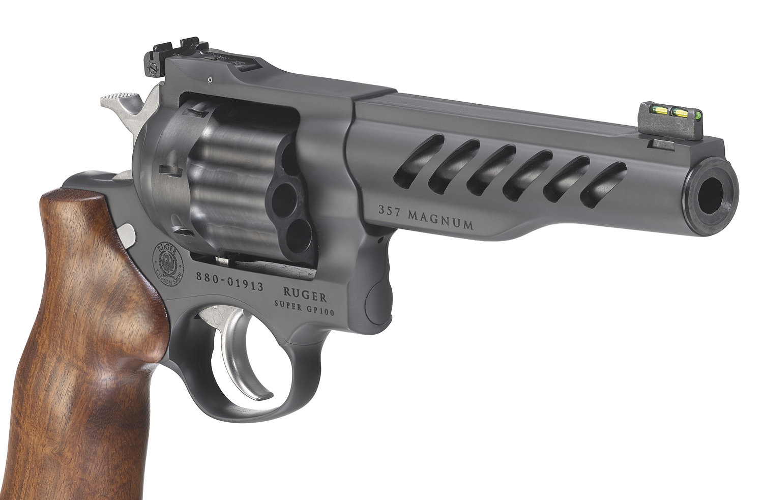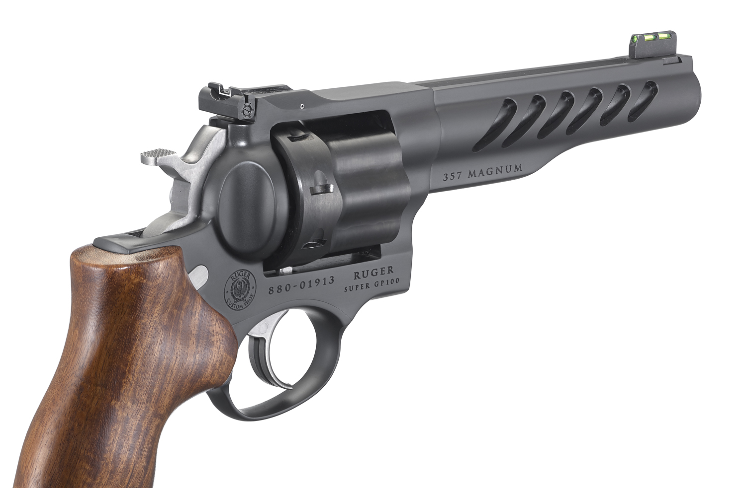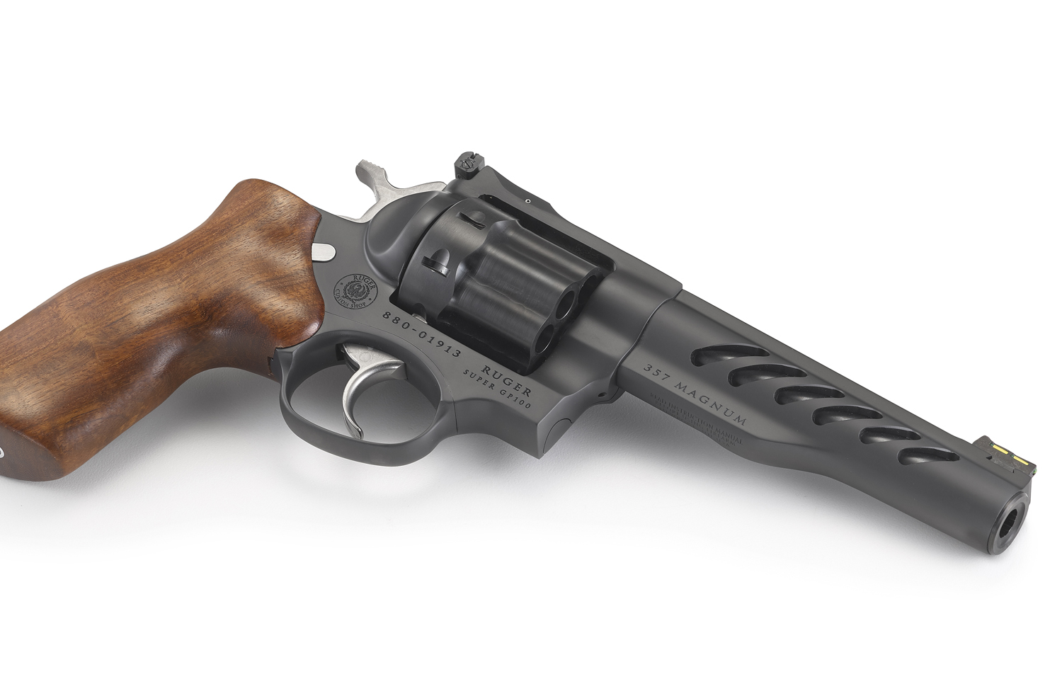 High-strength stainless steel cylinder, featuring a PVD finish for excellent durability and ease of extraction, is extensively fluted to reduce weight.