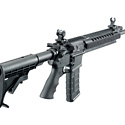 The Ruger SR-556 is equipped with a six-position telescoping M4-style buttstock that houses a Mil-Spec buffer and spring. A Hogue® Monogrip® pistol grip and three Troy Industries Rail Covers provide a comfortable ergonomic hold when carrying or shooting.