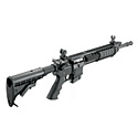 The SR-556/6.8 retains all the features of the original SR-556 that make it an outstanding value in the AR-style rifles. The patent-pending, two-stage piston delivers a smooth power stroke to the one-piece bolt carrier, which softens recoil, aiding both shooter comfort and durability of the rifle. The four-position gas regulator allows the shooter to tune the rifle to the ammunition being fired and environmental conditions present. A chrome-lined, cold hammer forged barrel provides accuracy and longevity, Troy Industries Folding Battlesights™, Quad Rail and rail covers add considerable value to the package, as does the Hogue® Monogrip®, six-position stock, sight adjustment tool, and the padded carry case, all included with the SR-556/6.8.