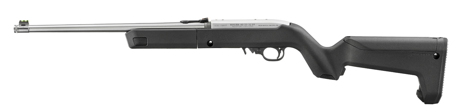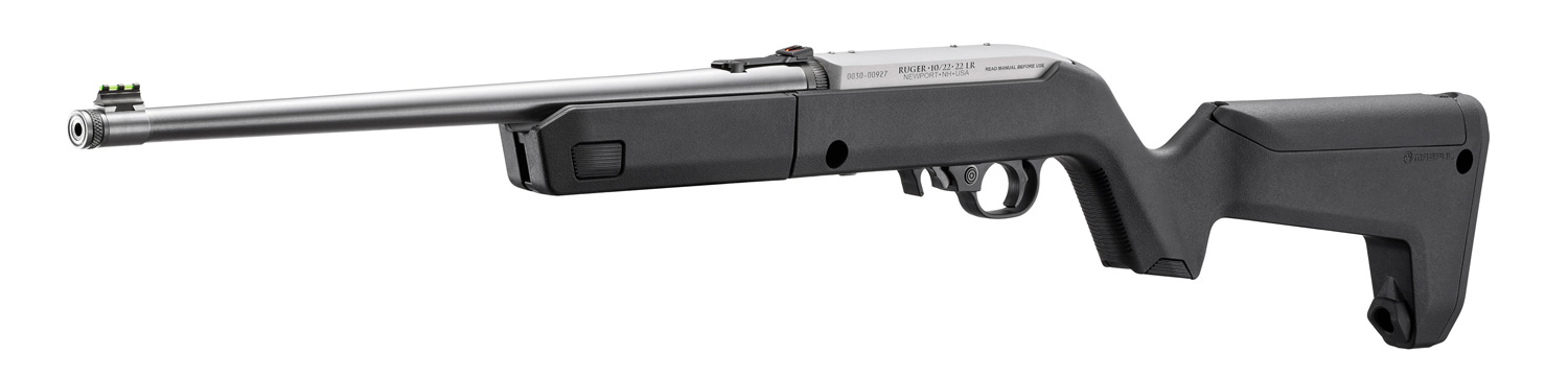 Features a Magpul® X-22 Backpacker stock with an ergonomic handguard, optional QD sling mounting capability, integrated storage compartment in the grip, a hinged storage compartment in the stock capable of storing up to three spare 10-round magazines, an MOE SL® non-slip rubber buttpad, and a unique locking interface to attach the barrel assembly to the receiver when being transported.