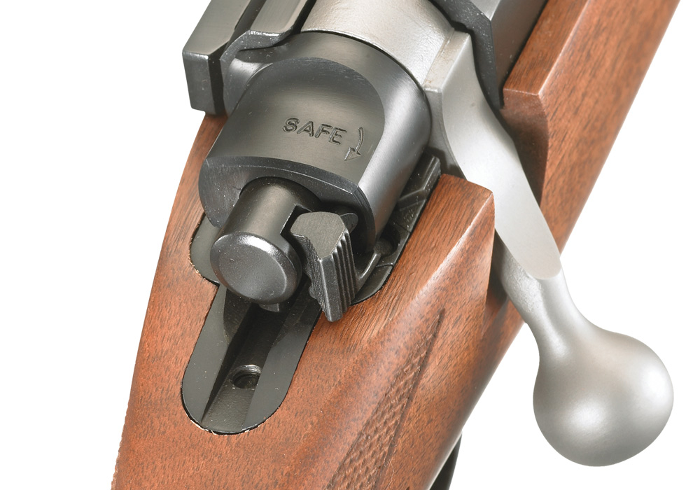Three-position safety is easily accessible and allows the shooter to lock the bolt or to load and unload the rifle with the safety engaged.