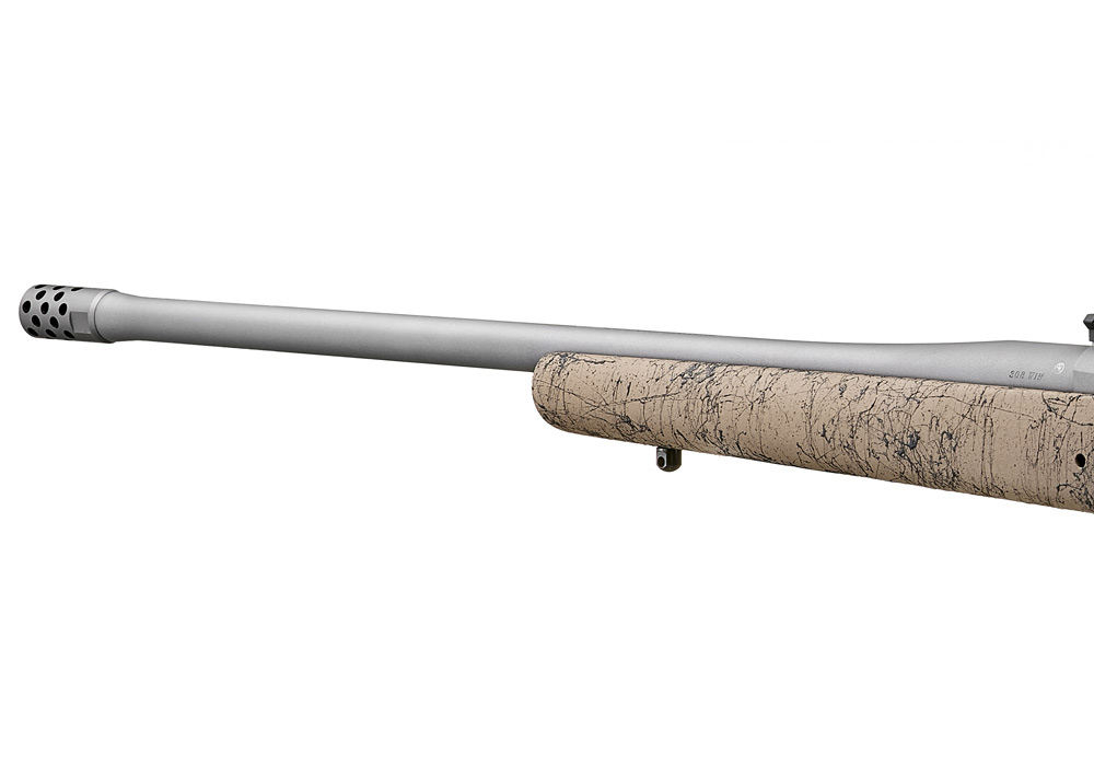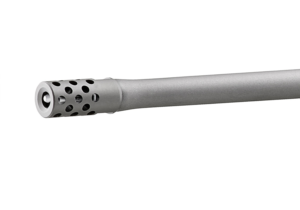 The Ruger® Muzzle Brake System includes a removable, radial-port muzzle brake that significantly reduces felt recoil. For times when the brake is not preferred, it may be replaced by the included dynamically-matched muzzle weight. Switching between the brake and the weight will not change the bullet's point of impact for a particular load. The included thread protector may be used if neither the brake nor the weight is desired.