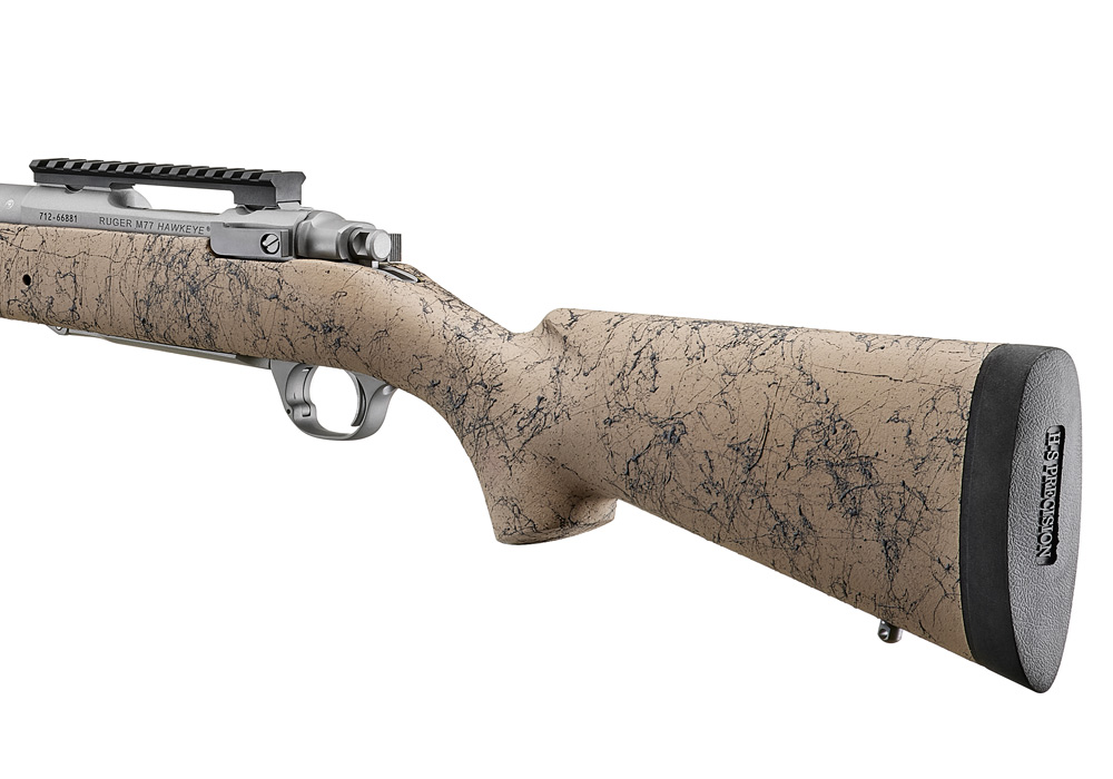 Pro-Series® H-S Precision® tan-black speckled synthetic stock features a full-length aluminum bedding block and slender pistol grip with Pro-Center® technology.