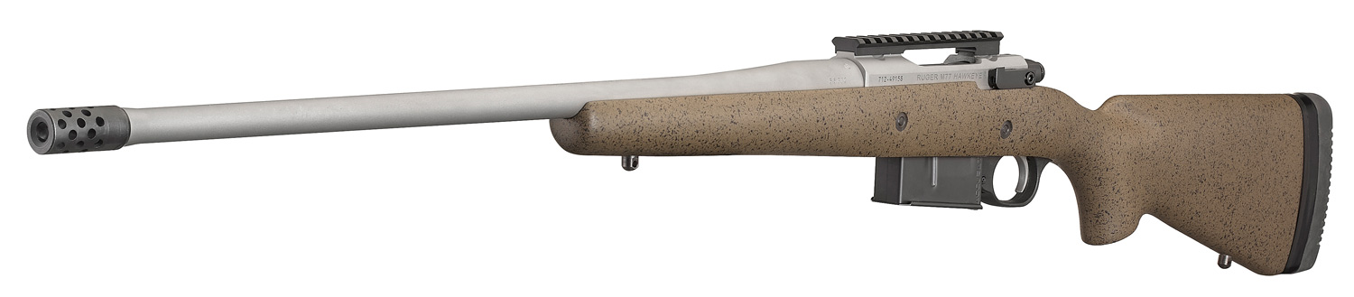 Radial-port muzzle brake significantly reduces felt recoil.