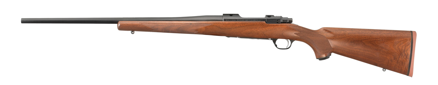 Ergonomically pleasing stock has rounded contours along the barrel, on the bottom of the stock and on top of the pistol grip and wrap-around checkering on grip and forend.