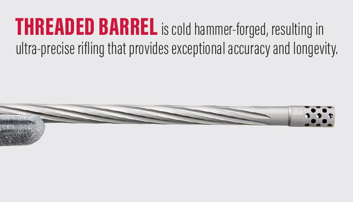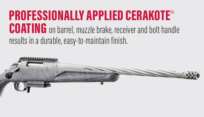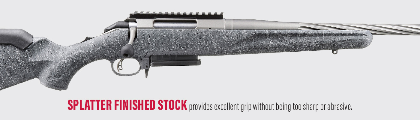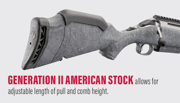 Standard Generation II models feature a durable, Gun Metal Gray Cerakote barreled action and a dark gray stock that is textured with black and gray splatter for excellent grip and control in the field.