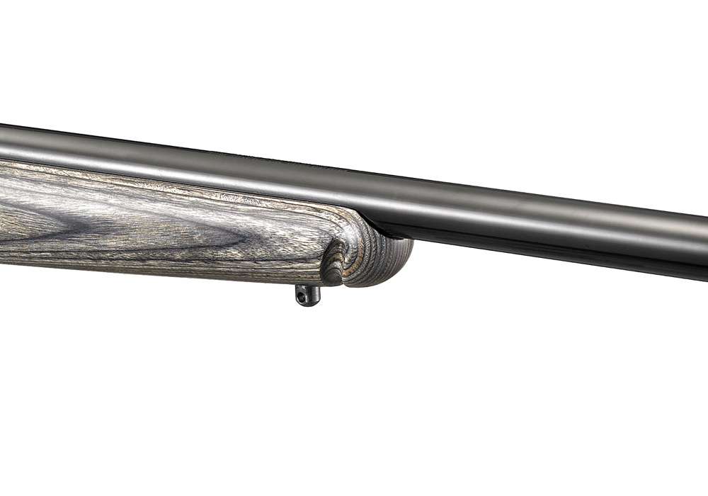 Black laminate stock features an Alexander Henry forend in addition to sling swivels front and rear, to help you steady your aim whether shooting off of sticks, a bipod, or sling. Rubber buttpad anchors the rifle at the rear.