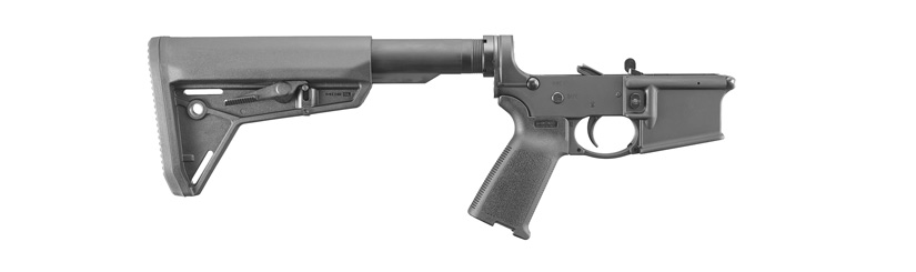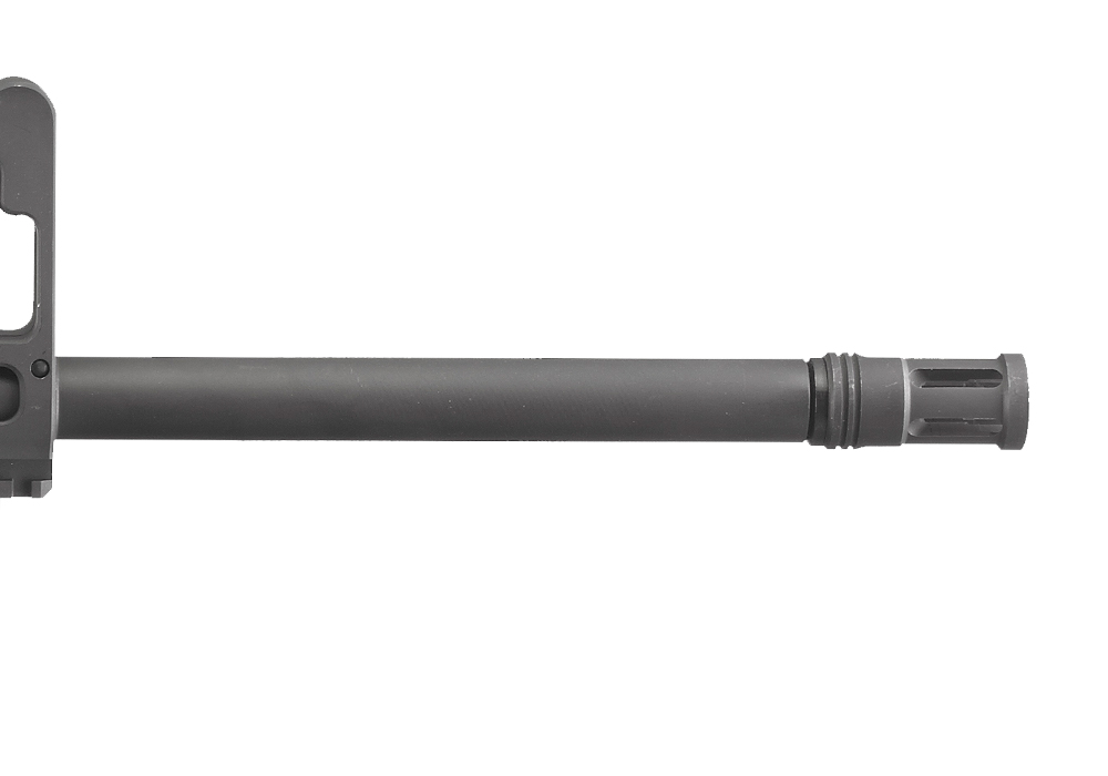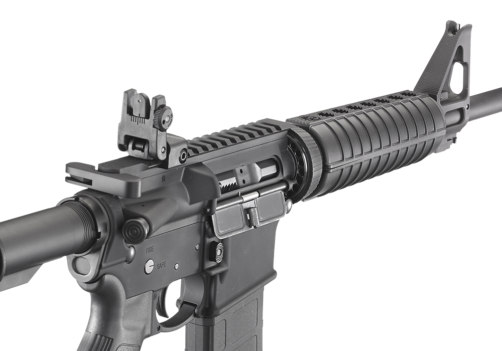 Complete rifles are equipped wih a cold hammer-forged alloy barrel with 1:8" twist rifling that provides exceptional accuracy with bullets from 35 to 77 grains. M4 feed ramps and 5.56 NATO chamber allows the use of both 5.56 NATO and .223 Rem. ammunition. The barrel and 1/2"-28 Ruger® flash suppressor have a matte black oxide finish to reduce glare and provide corrosion resistance (excludes model 8502).