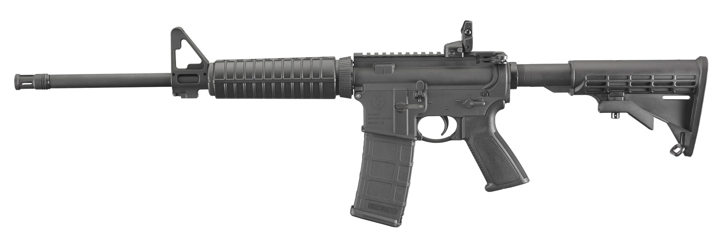Equipped with a medium contour, cold hammer-forged alloy barrel with 1:8" twist rifling that provides exceptional accuracy with bullets from 35 to 77 grains. M4 feed ramps and 5.56 NATO chamber allows the use of both 5.56 NATO and .223 Rem. ammunition. The barrel and 1/2"-28 Ruger® flash suppressor have a matte black oxide finish to reduce glare and provide corrosion resistance.
