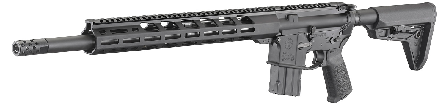 Ruger® muzzle brake is a radial port design that significantly reduces felt recoil and muzzle movement. The threaded barrel allows for standard muzzle accessories to be installed.