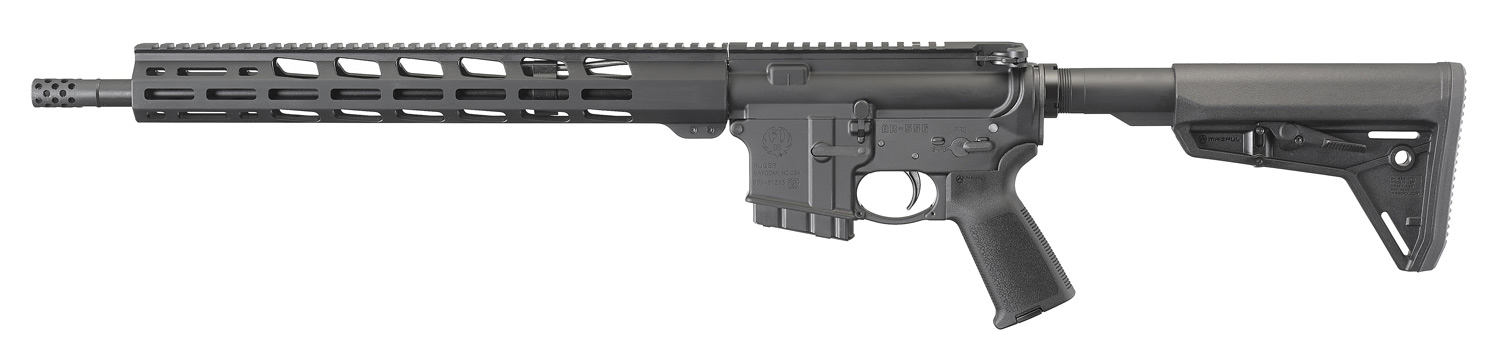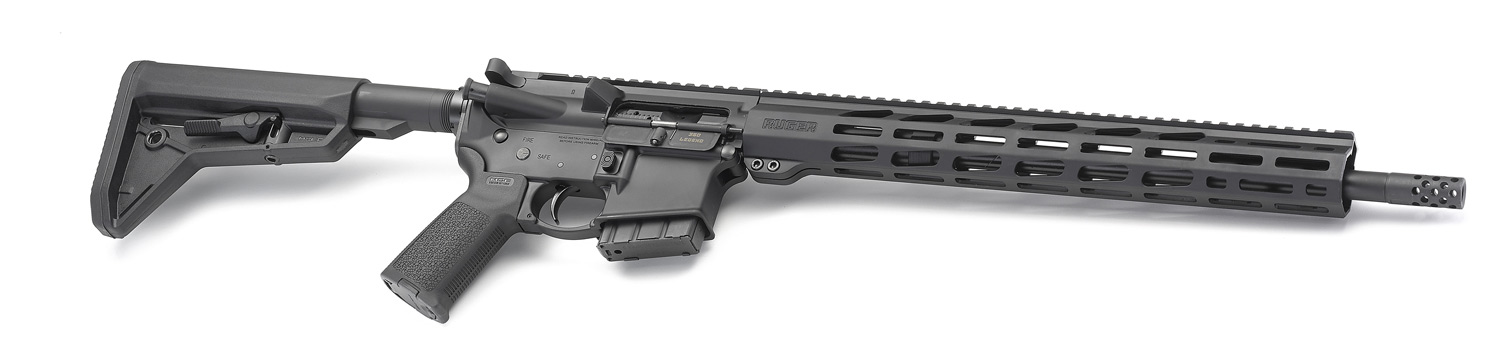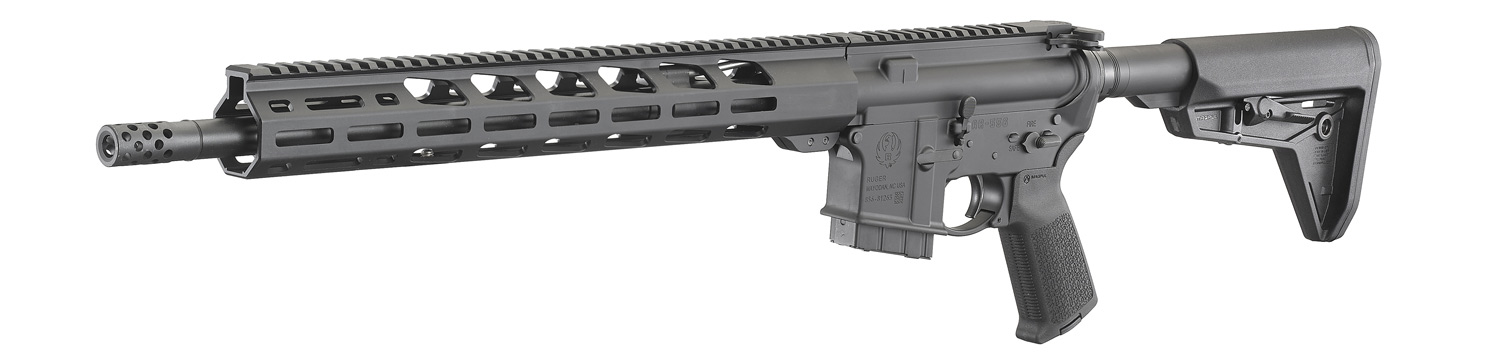 Lower receiver is fitted with Magpul® MOE® grip and MOE SL® collapsible buttstock on a Mil-Spec buffer tube.