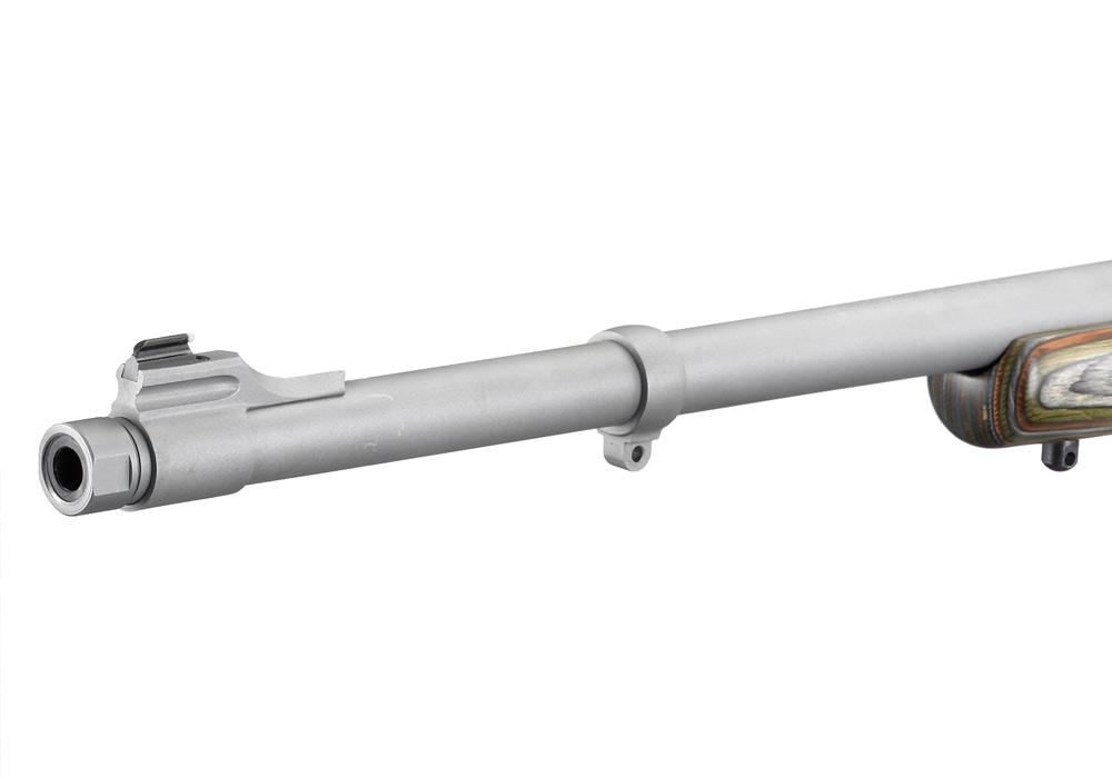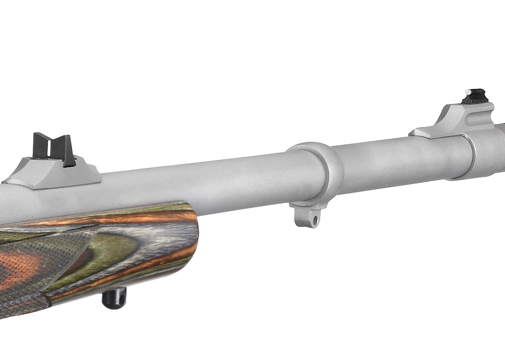 Hinged solid-steel floorplate for easy unloading without having to chamber each cartridge. Features an engraved Ruger logo and latch that is flush with the trigger guard to avoid accidental dumping of cartridges.
