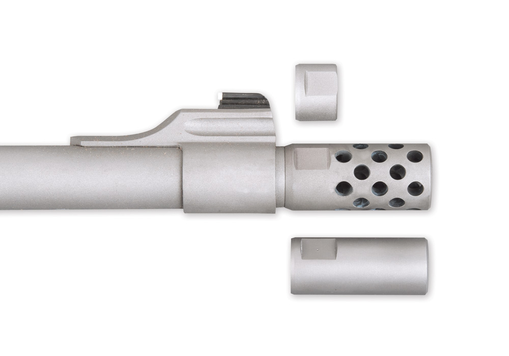 The Ruger® Muzzle Brake System includes a removable, radial-port muzzle brake that significantly reduces felt recoil. For times when the brake is not preferred, it may be replaced with the included dynamically-matched muzzle weight. Switching between the brake and the weight will not change the bullet's point of impact for a particular load. The included thread protector may be used if neither the brake nor the weight is desired.