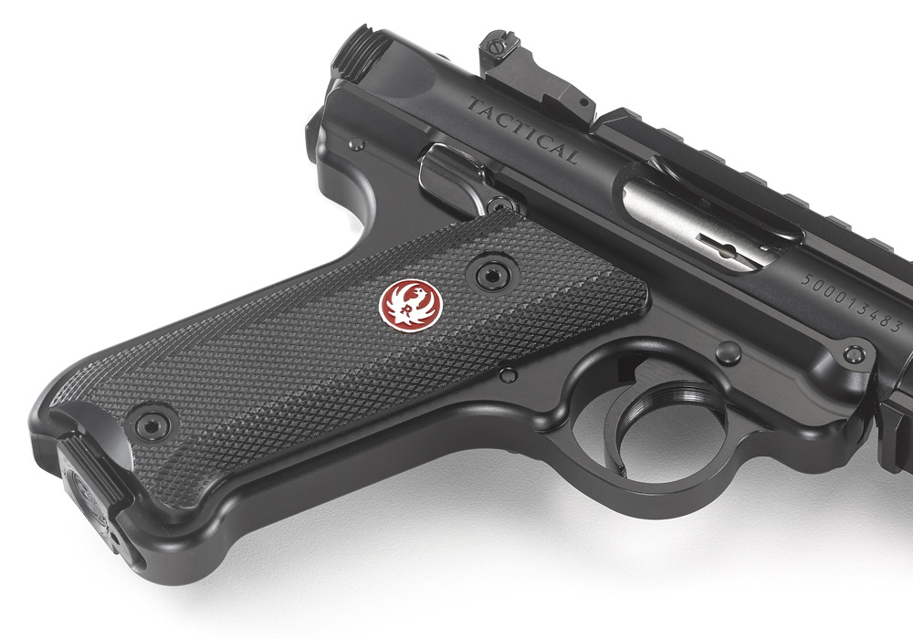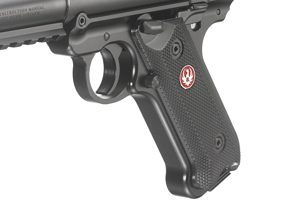 Smoothly contoured, comfortable grip features a natural pointing grip angle with replaceable grip panels for a non-slip hold.