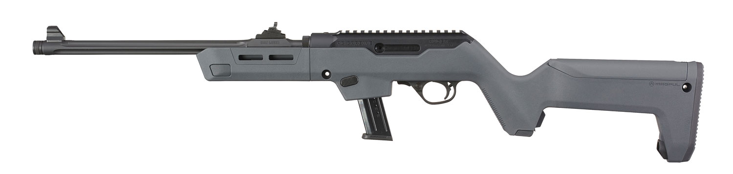 Features a Magpul® PC Backpacker stock with an ergonomic handguard, optional QD sling mounting capability, integrated storage compartment in the grip, a hinged storage compartment in the stock capable of storing spare magazine, an MOE SL® non-slip rubber buttpad, and a unique locking interface to attach the barrel assembly to the receiver when being transported.
