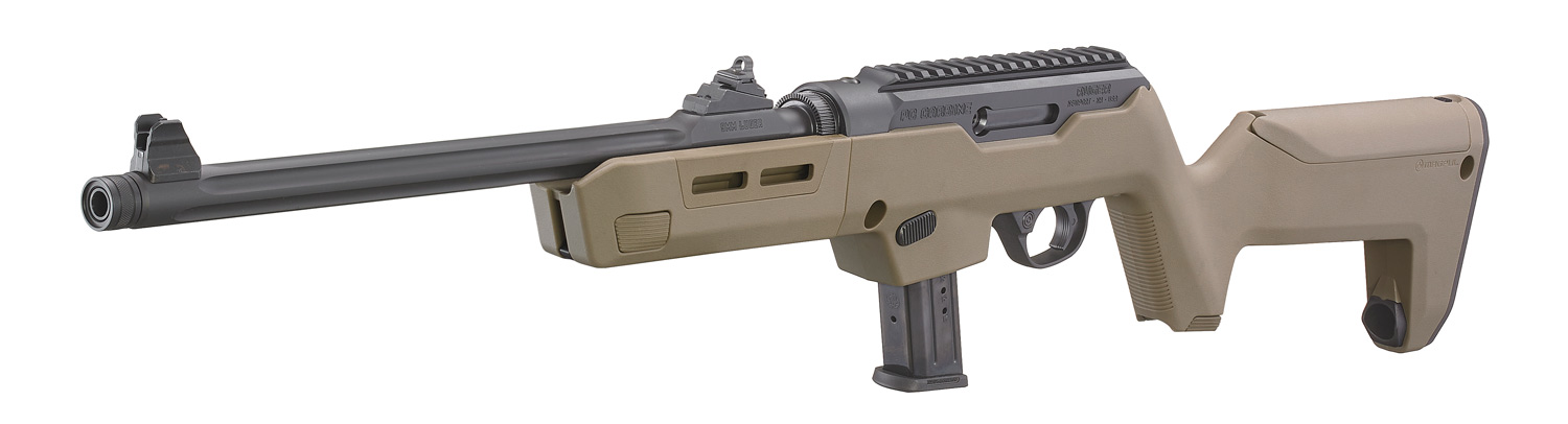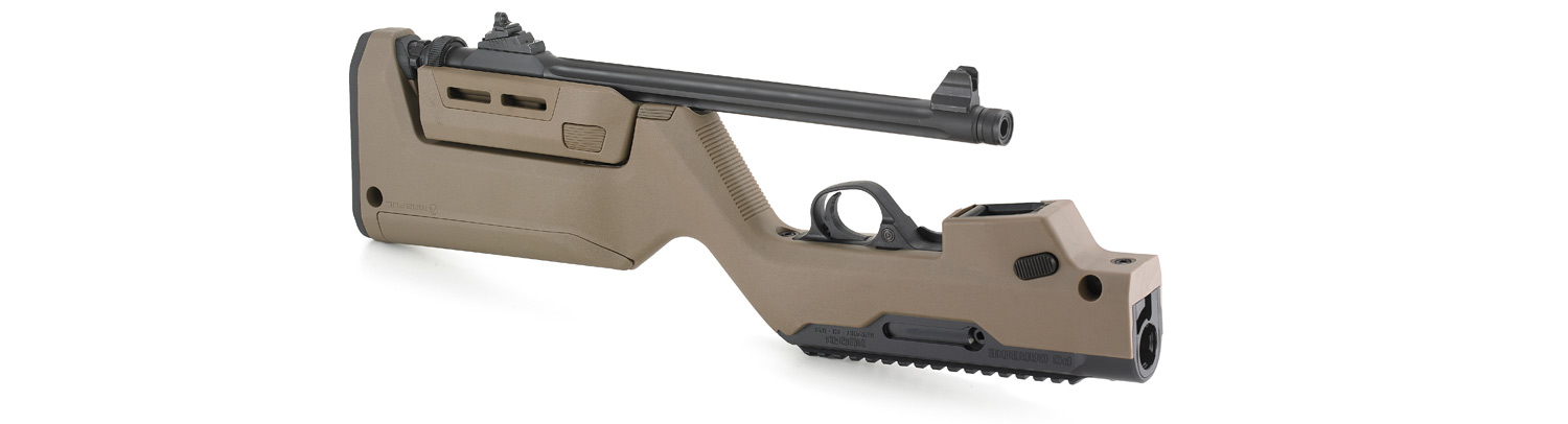 Features a Magpul® PC Backpacker stock with an ergonomic handguard, optional QD sling mounting capability, integrated storage compartment in the grip, a hinged storage compartment in the stock capable of storing spare magazine, an MOE SL® non-slip rubber buttpad, and a unique locking interface to attach the barrel assembly to the receiver when being transported.