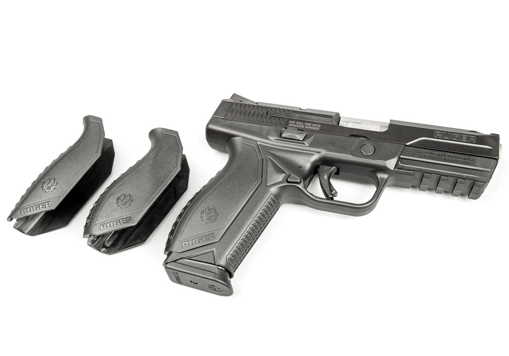 Also includes - Two, nickel-Teflon® plated steel magazines; small (9mm models only), medium and large grip modules.