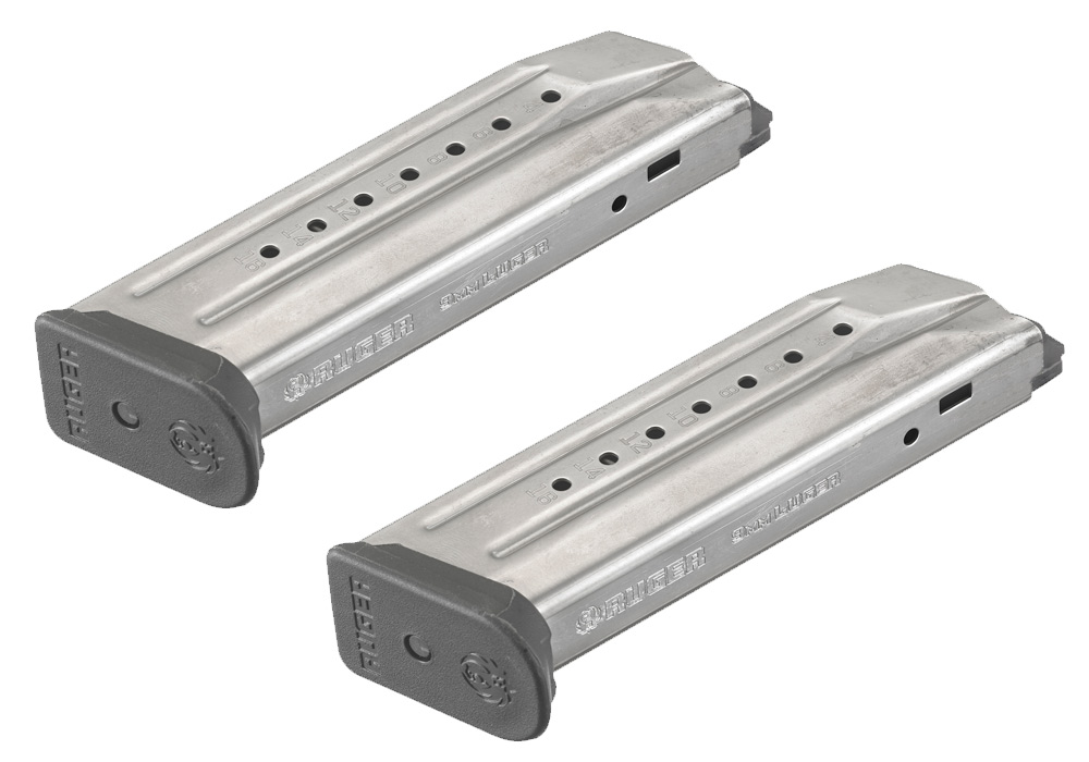Also includes - Two, nickel-Teflon® plated steel magazines; small (9mm models only), medium and large grip modules.