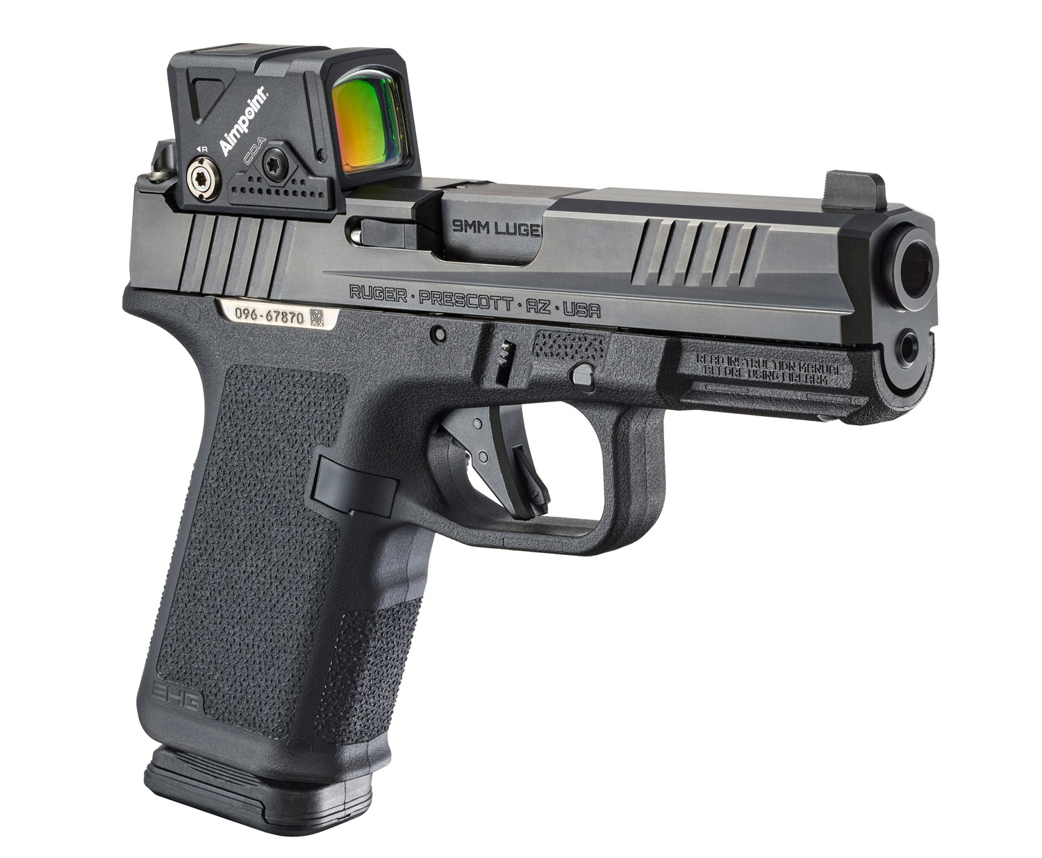 Other EHG features include: a low-profile, flared magazine well for quick and easy magazine insertion; a trigger guard undercut and beaver tail that promote a high grip for better control; a magazine release scallop for easy access; and a universal-pattern accessory rail for use with a variety of lights and lasers.