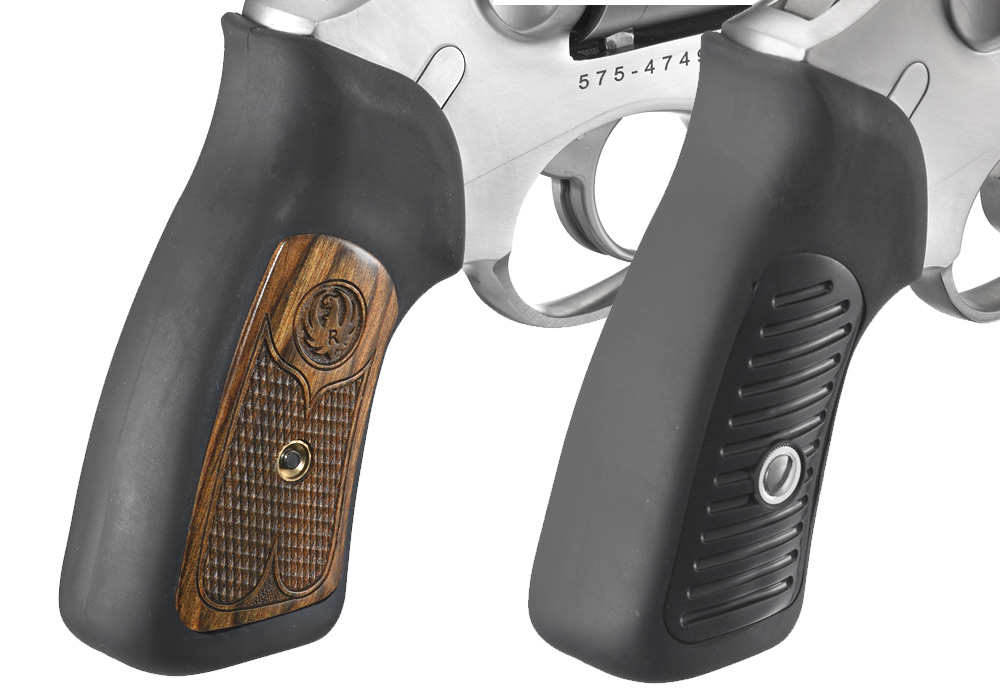 Cushioned rubber grip with black synthetic or hardwood insert has no exposed metal in the backstrap, making it extremely comfortable.