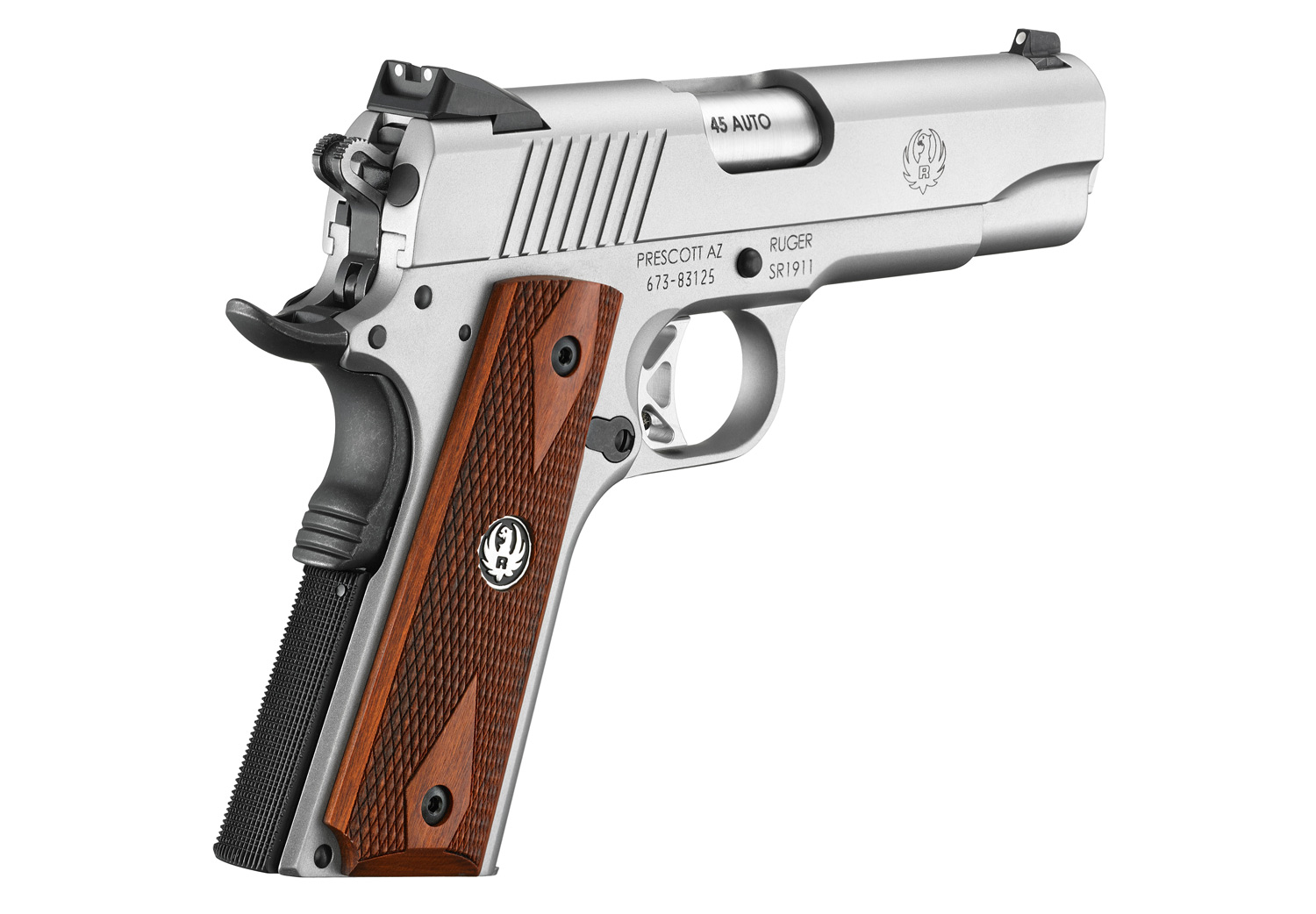 Features a flat mainspring housing and rear slide serrations for a positive grip.