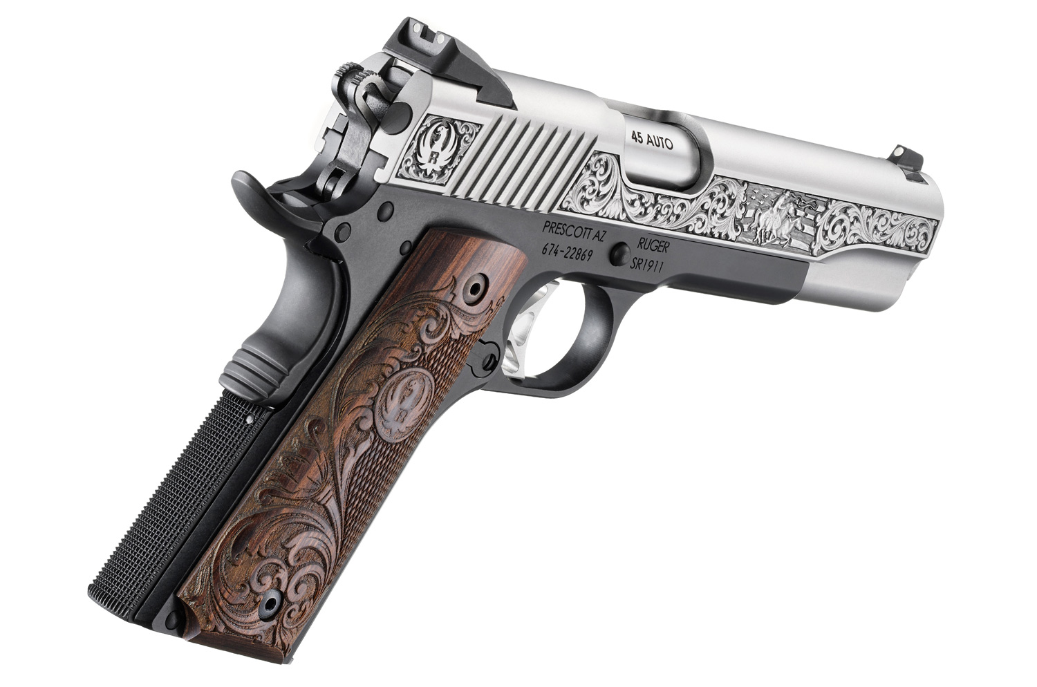 Features a flat mainspring housing and rear slide serrations for a positive grip.