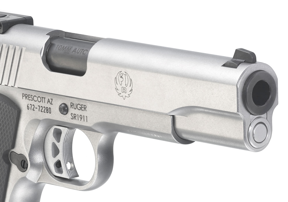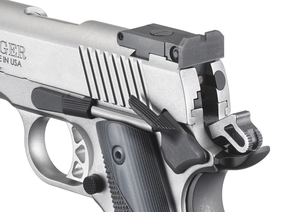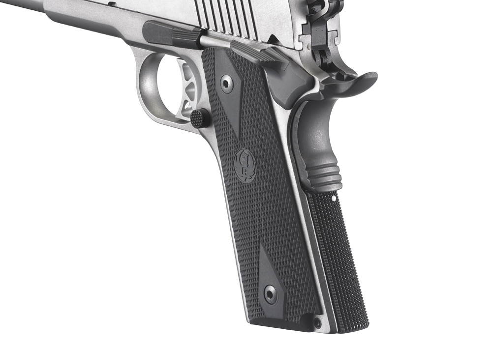 Features a flat mainspring housing and rear slide serrations for a positive grip.
