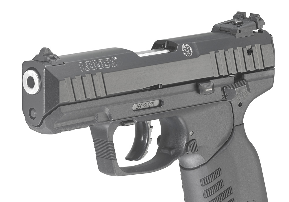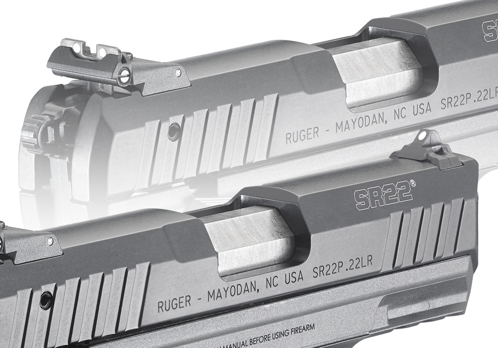 The dovetailed, high-visibility, three-dot sight system has a fixed front sight and a rear sight that is both windage- and elevation-adjustable. A reversible blade allows shooters to select two white dots or a solid black blade.