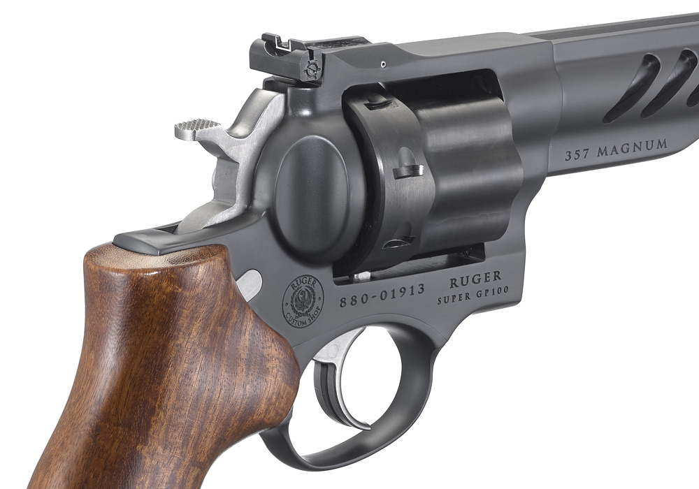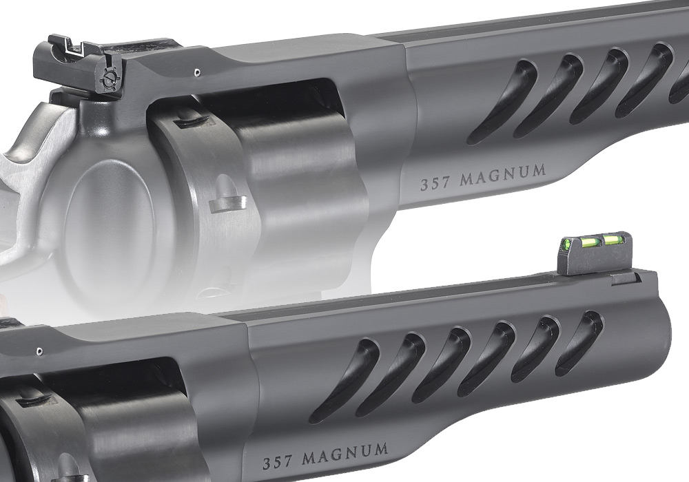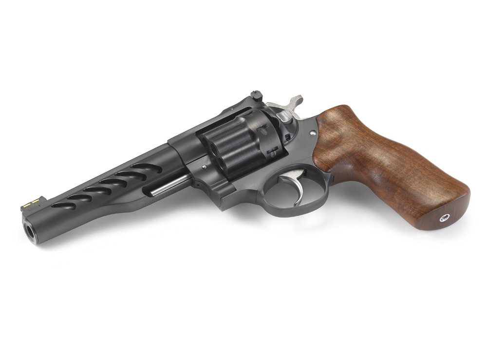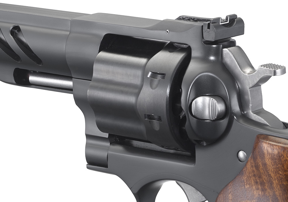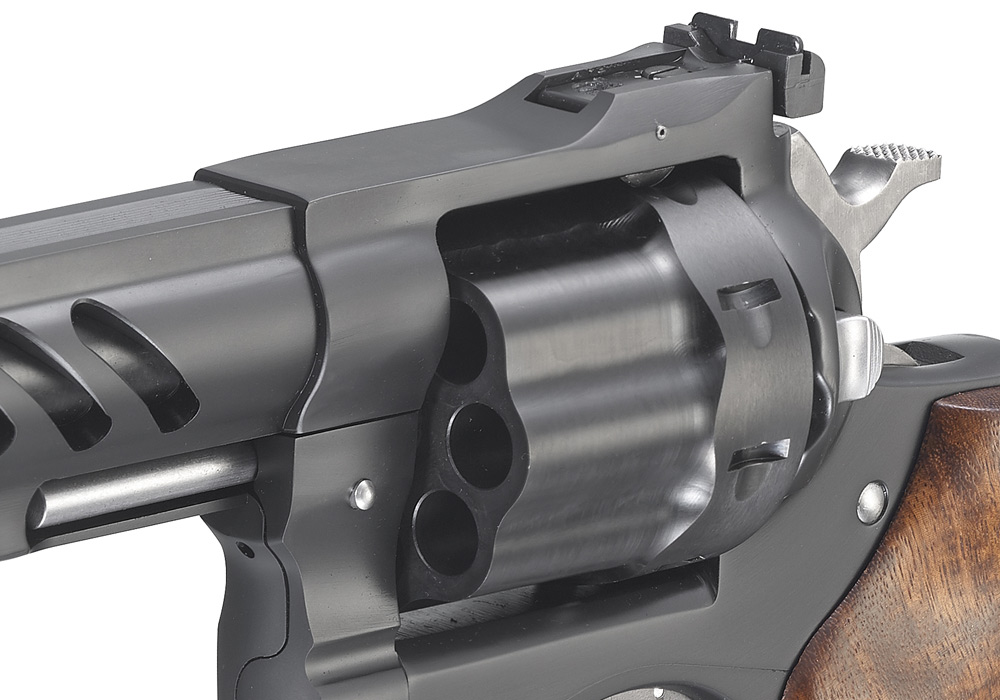 Cylinder and extractor are cut for moon clips to speed reloading during intense competition.