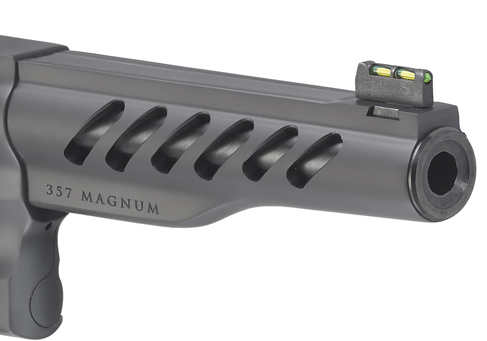 High-strength stainless steel cylinder, featuring a PVD finish for excellent durability and ease of extraction, is extensively fluted to reduce weight.