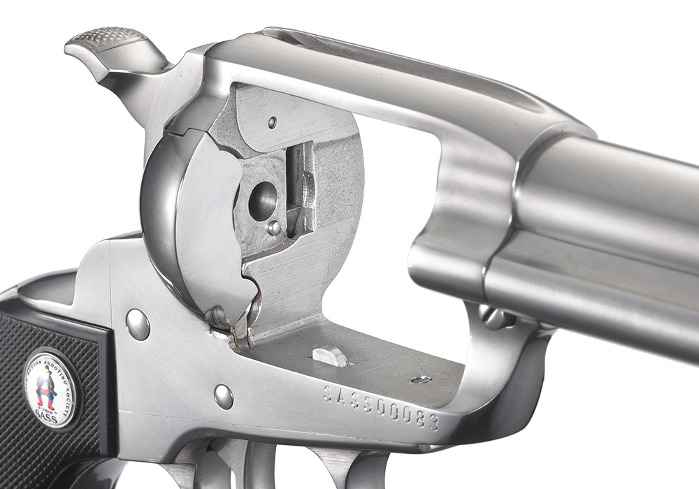 Patented reverse indexing pawl allows for easier loading and unloading, while the traditional beveled cylinder simplifies holstering.
