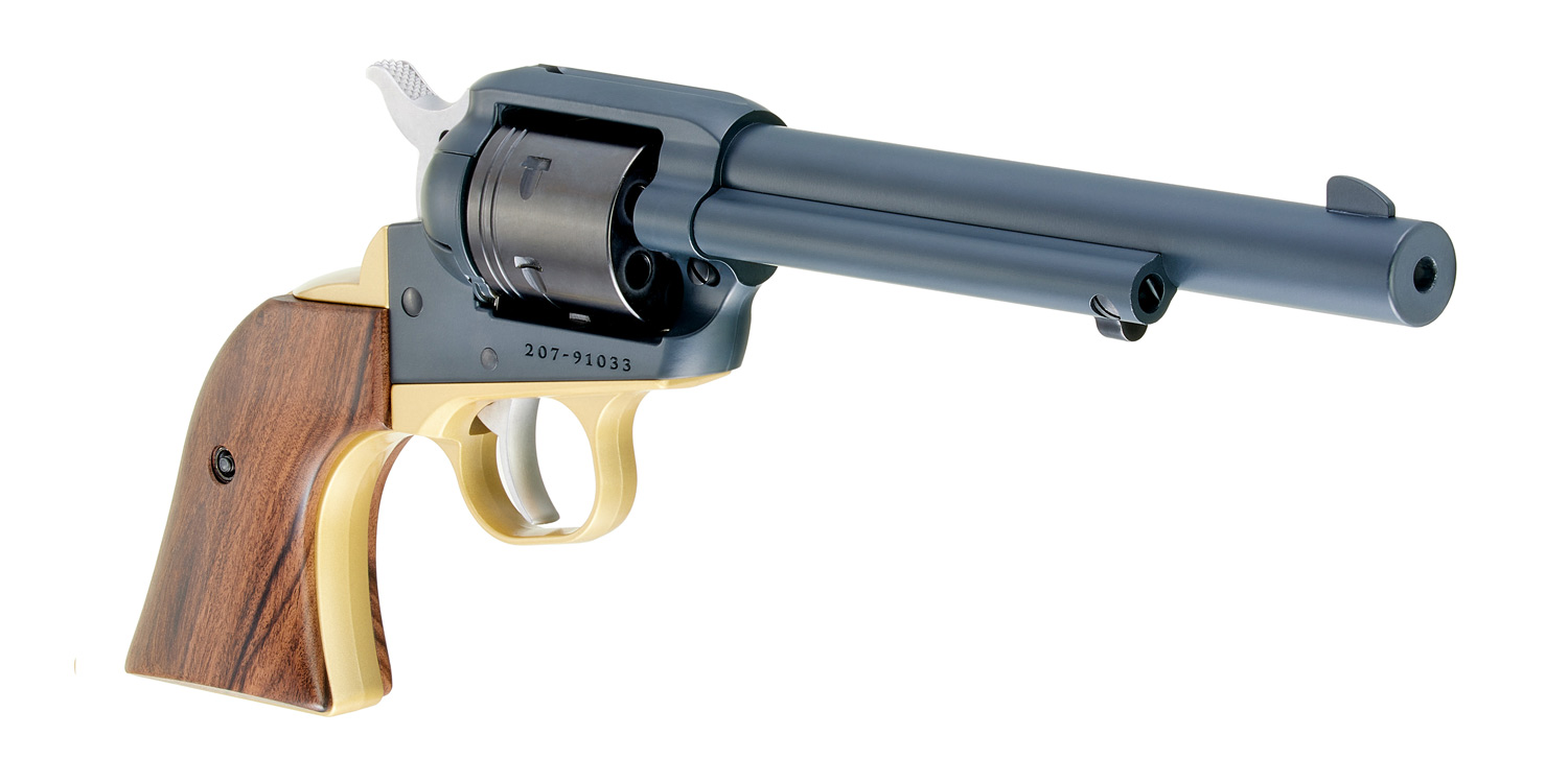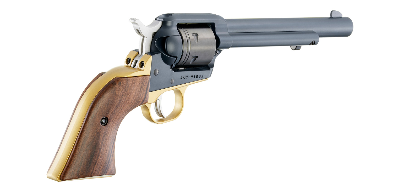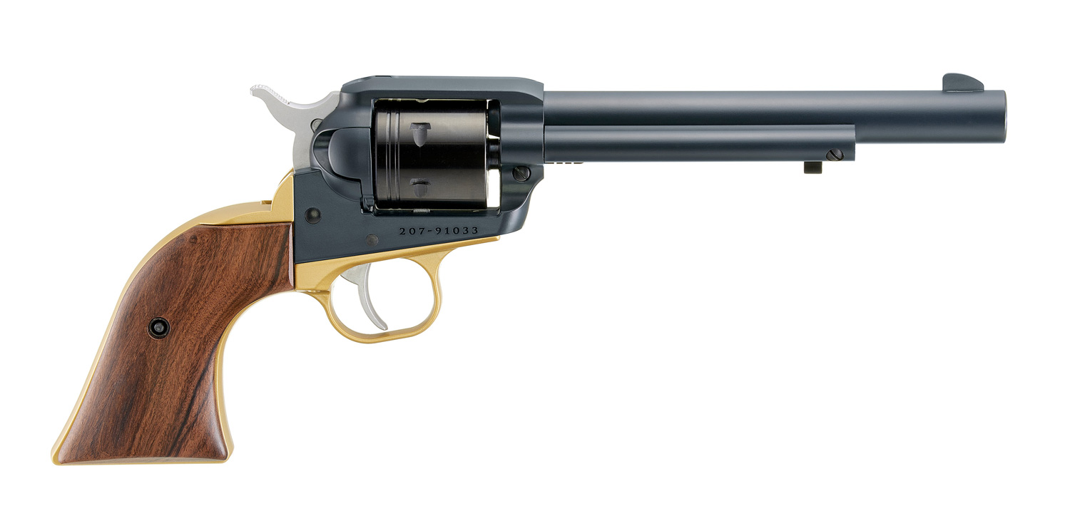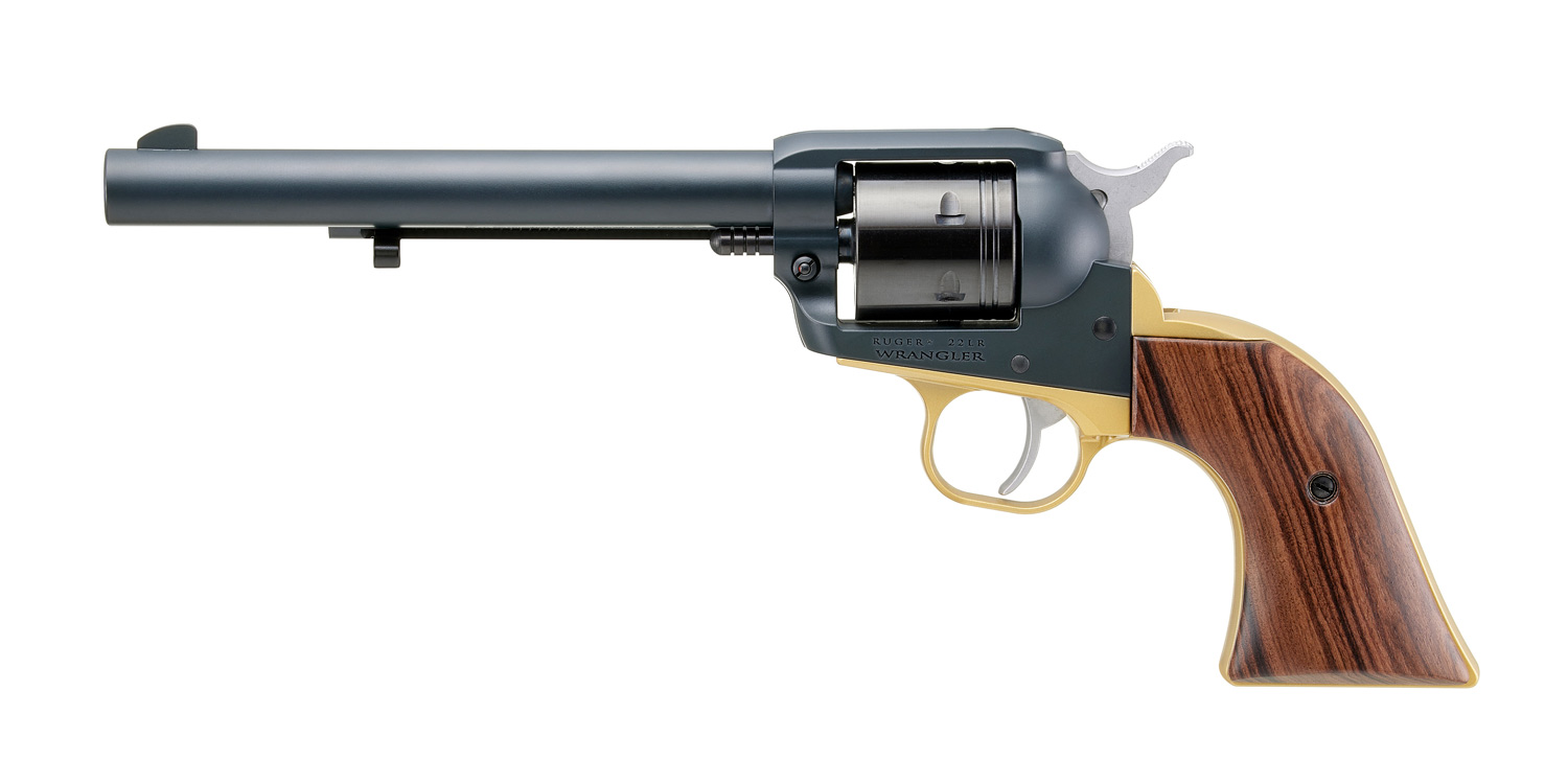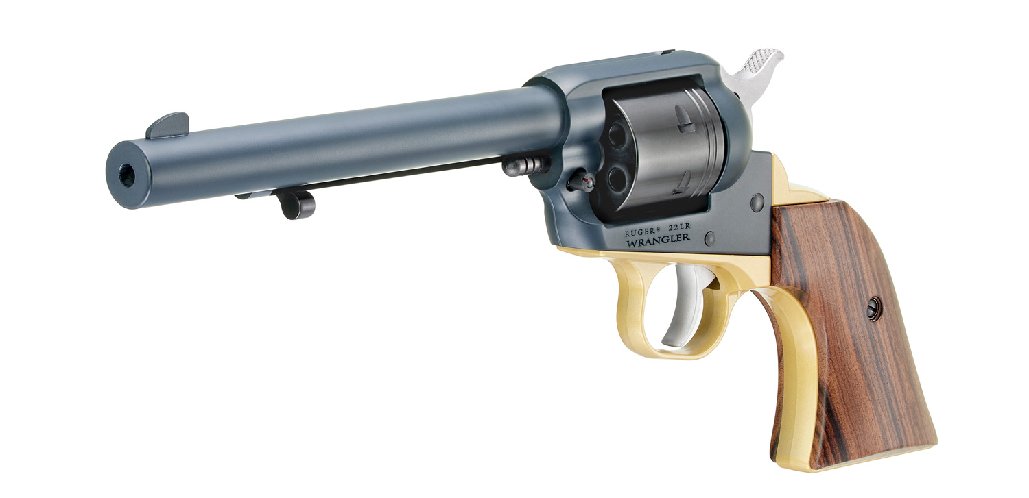 Midnight blue cerakote cylinder frame with brass cerakote trigger guard and grip frame.